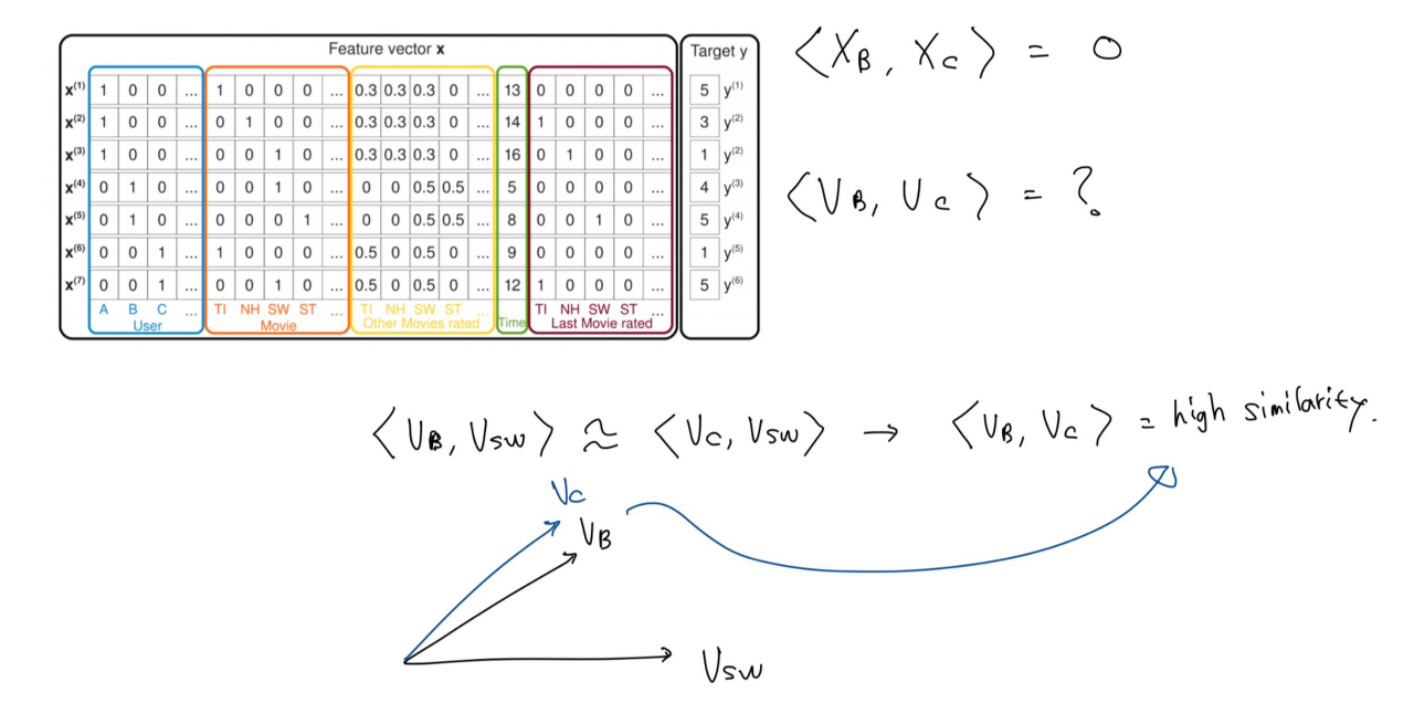 위의 weight가 벡터로 분할되어 사용자 간의 잠재적 특성을 파악할 수 있다는 것에 대해
