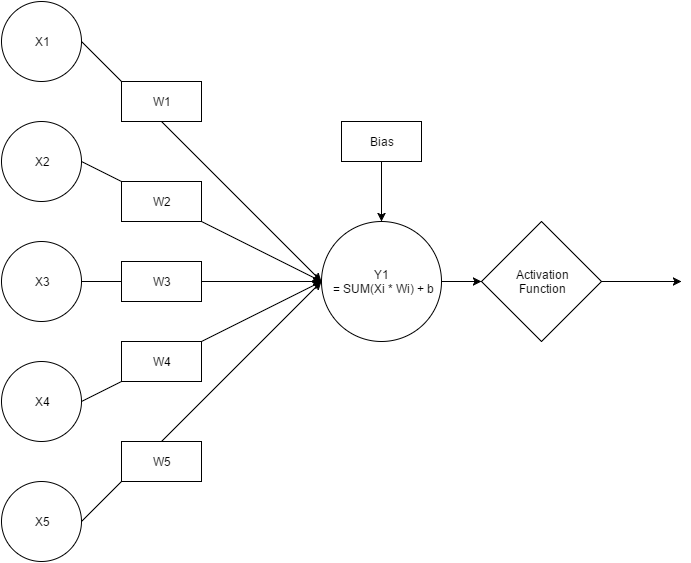 - 이때 입력 값에 weight 를 주며, bias를 통해 underfitting 또는 overfitting 을 방지