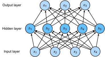 - 위 MLP는 입력 4개, 은닉층의 유닛 5개, 출력 3개를 가지고 있음