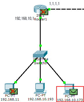 따라서 초록색 PC (192.168.10.193)에서 192.168.10.173으로 ping 을 보냅니다.