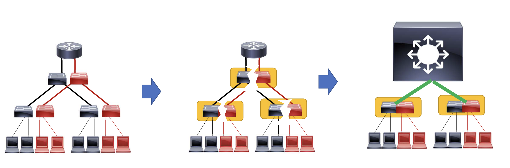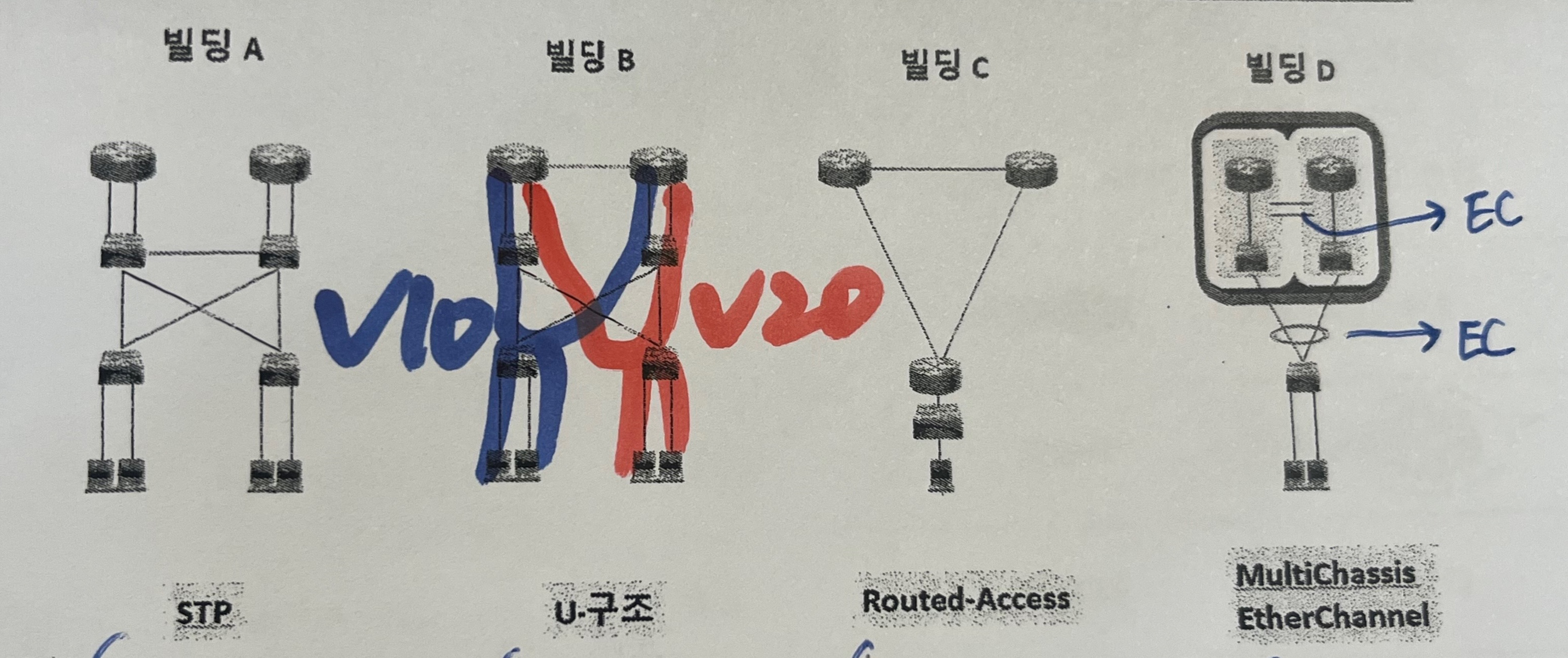 | STP | U-구조 | Routed-Access | MultiChassis EtherChannel | |