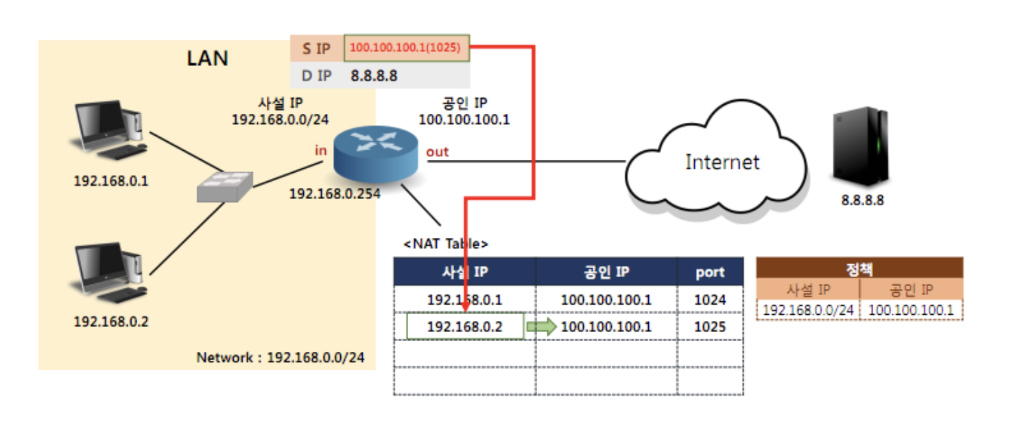 | 네트워크 통과시 | 바뀌지 않는 주소 ( ) |