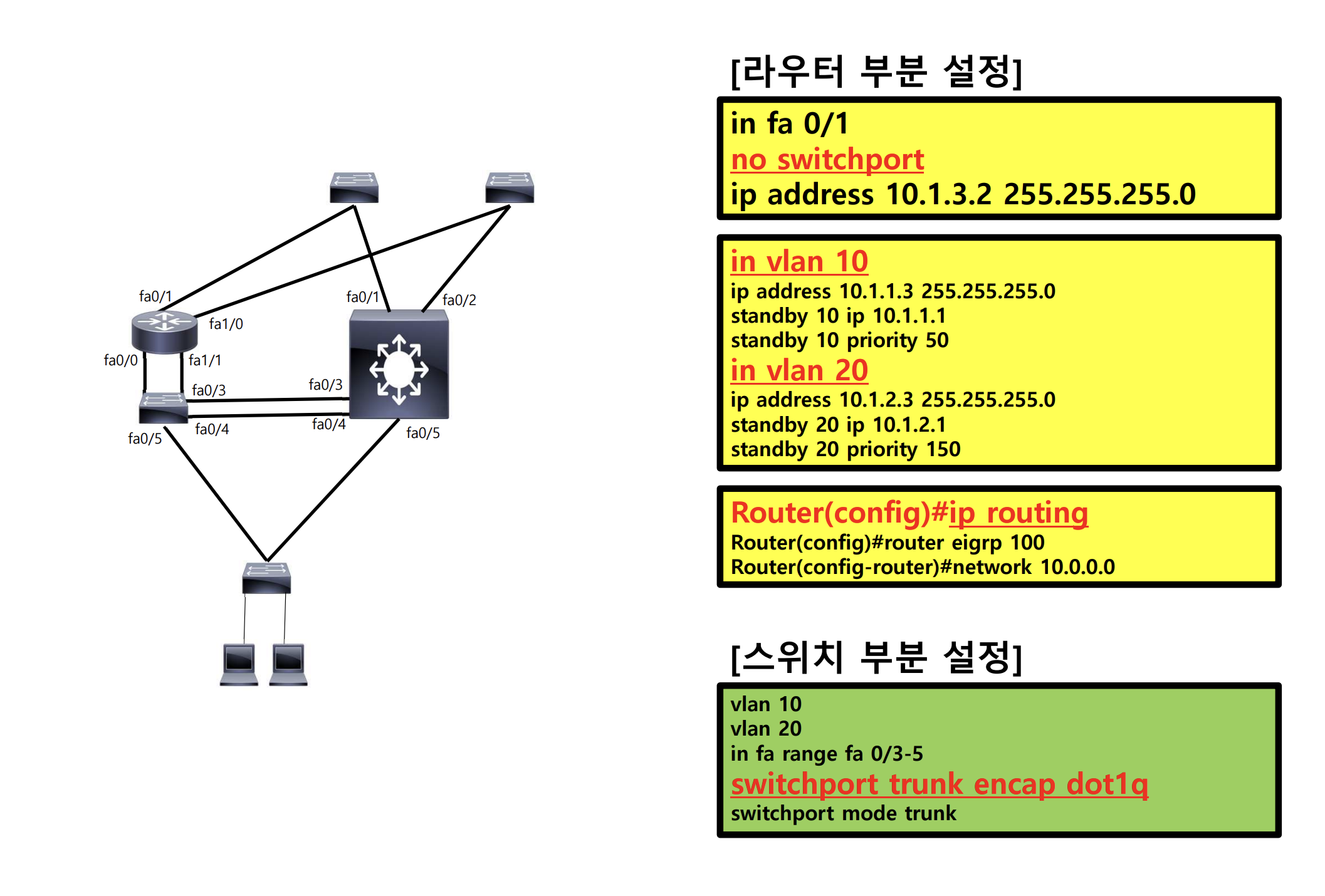 L3 스위치 설정: 라우터 부분 설정