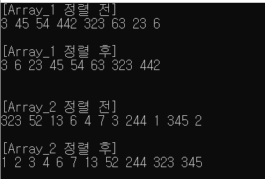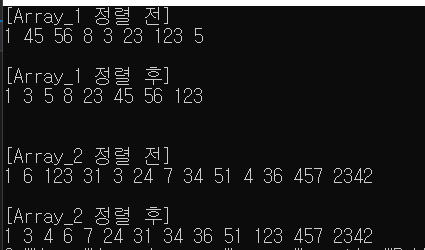 여섯 번째, 배열 정렬 완료
