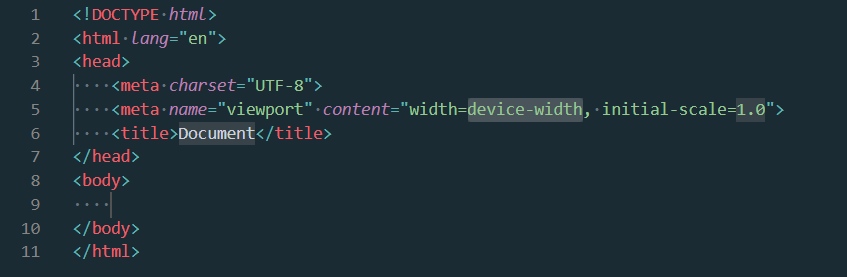 Visual Studio Code을 통해 HTML 문서를 생성하면 가장 먼저 보이는 것이 위 사진이다.