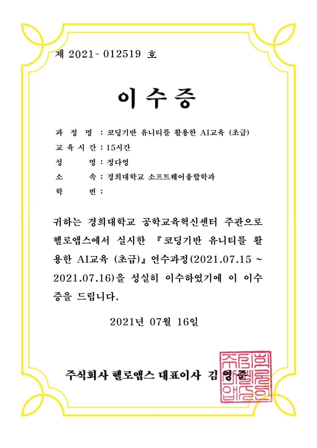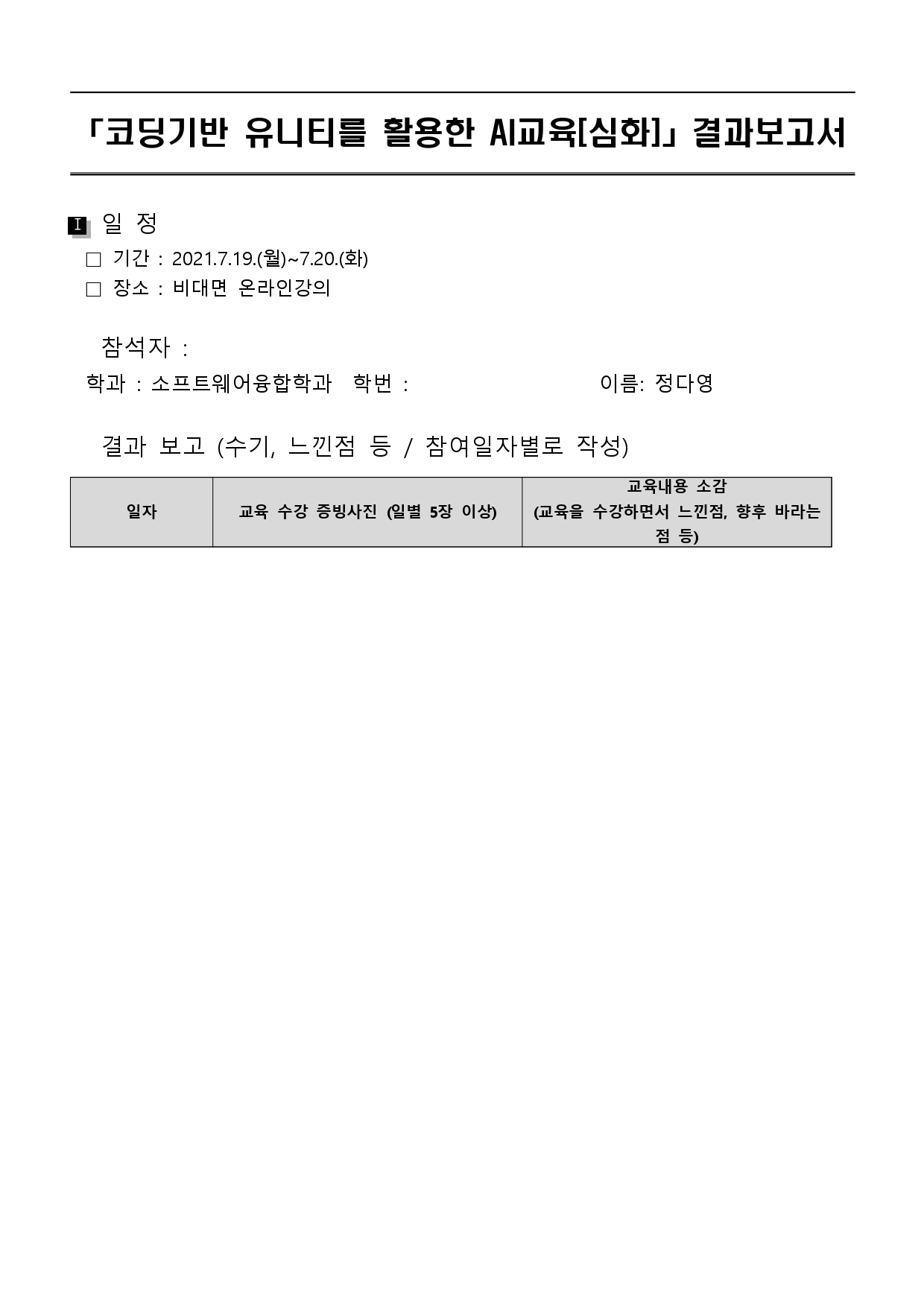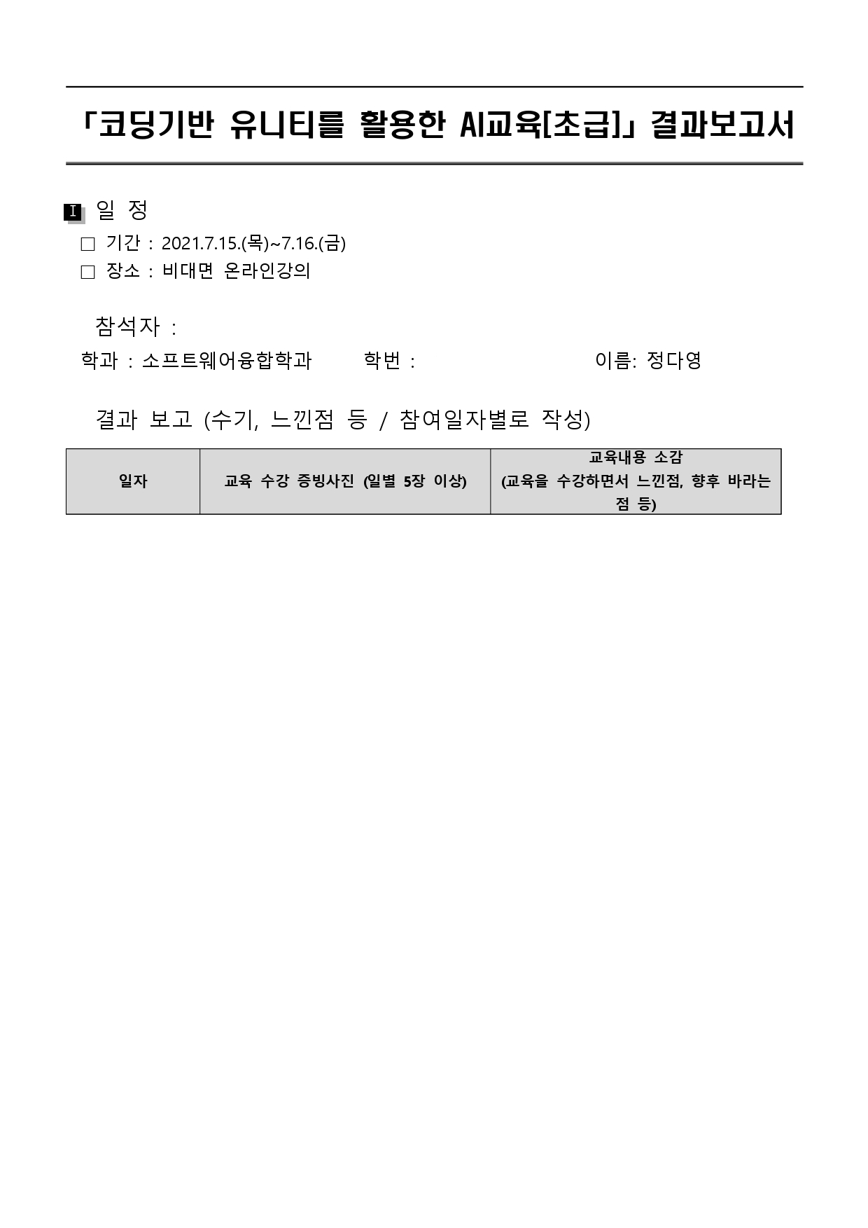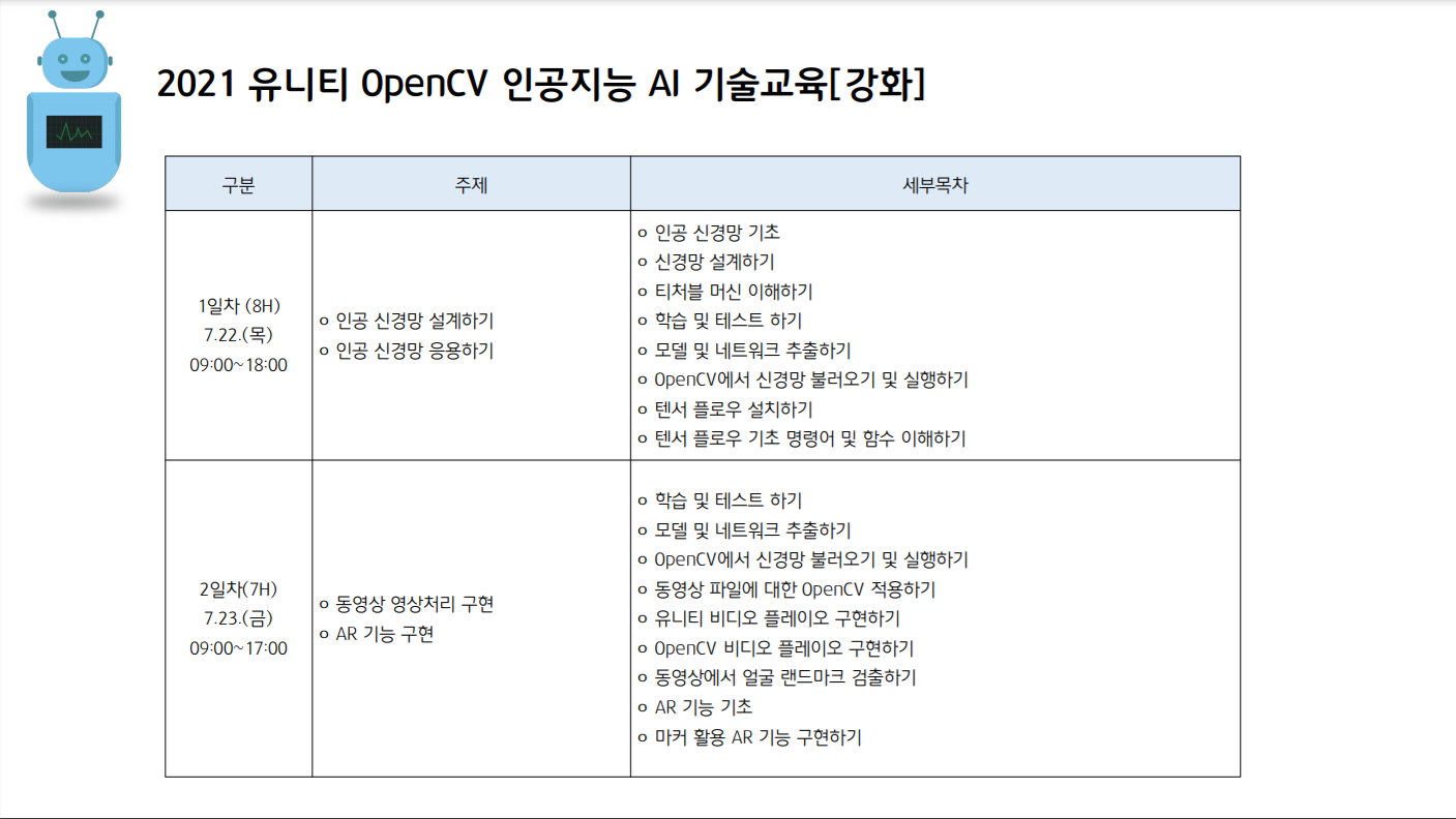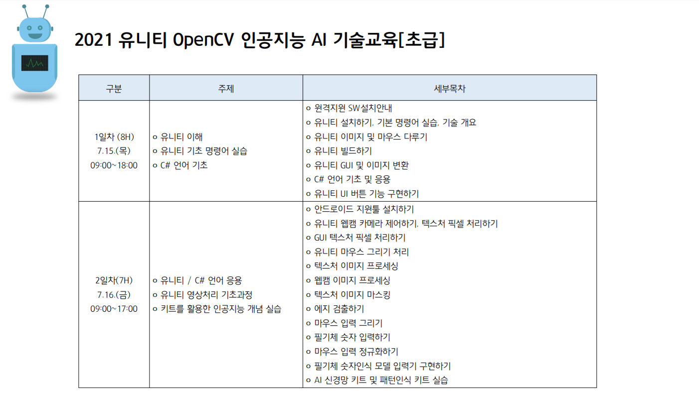 ① 2021 유니티 OpenCV 인공지능 AI 기술 교육 (초급) 결과 보고서