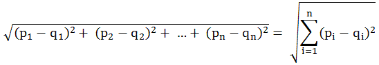 유클리드 거리(Euclidean distance)는 다차원 상의 두 점 사이의 거리를 계산하는 공식이다.