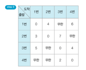 - 최단 거리 테이블을 초기화한다.